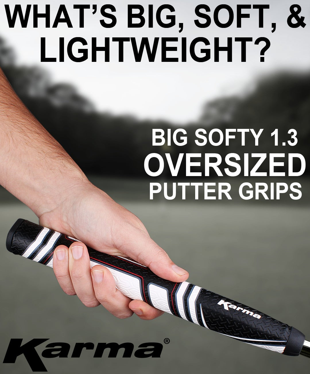 It’s big, it’s soft, and perfectly suited to today’s modern putters. The Karma Big Softy 1.3 putter grip features a reduced taper profile with a wide flat front to take the wrists out of the putting stroke, resulting in a smoother, more consistent, and more accurate putting experience. Its super soft polymer, multi-texture pattern provides a comfortable, tacky feel and long-lasting durability. The 16” extended length is perfect for both standard length putters (use stepless putter shafts for best results) and mid-length / armlock style putters. For counter-balancing options, pair with aftermarket shaft counter weights before grip installation.